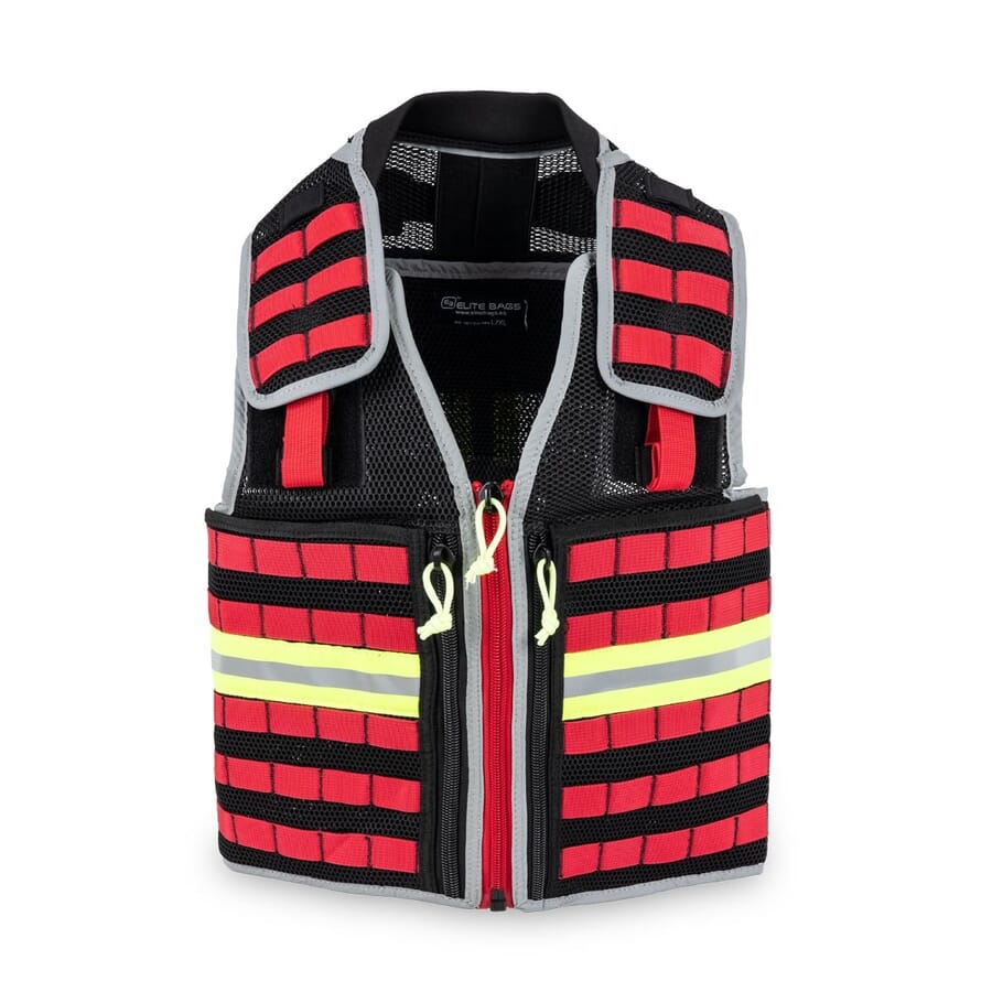 The E-VEST by Elite Bags is made of mesh fabric throughout its perimeter. It features two detachable front external pockets (via a MOLLE system) for diagnostic and intervention materials and two large-capacity internal flat pockets.